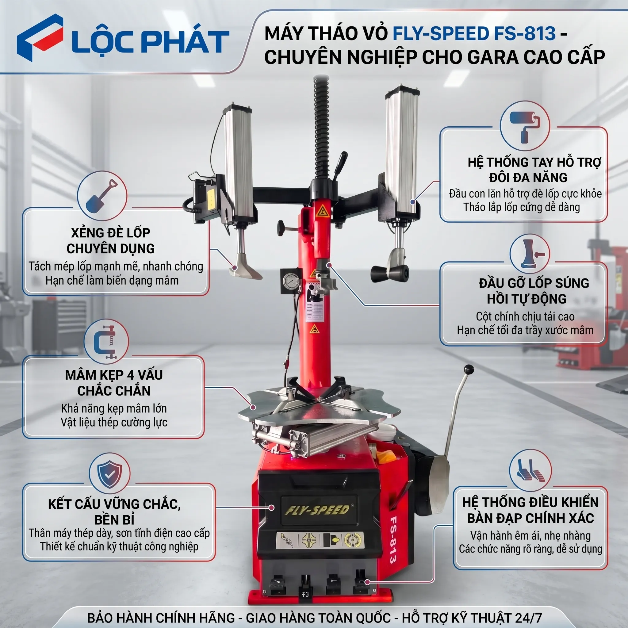 Khi mua Máy Tháo Vỏ Xe Tay Ga Và Du Lịch FLY-SPEED FS-813LR tại Thiết Bị Lộc Phát, quý khách hàng hoàn toàn yên tâm với chính sách bảo hành 12 tháng tiêu chuẩn.